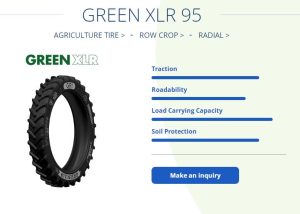 GREEN XLR 90 es una línea especial de llantas radiales angostas para todo tipo de trabajos de cultivo, cosecha y fumigación, diseñadas con una fuerte carcasa de nailon/rayón y una capa de impacto para garantizar un trabajo eficiente, una larga vida útil y una alta tracción bajo cargas pesadas. Su compuesto especial de la banda de rodadura proporciona una alta resistencia contra el desgaste y los cortes, mientras que el ancho reducido de los neumáticos facilita la conducción entre plantas sin causar daños; contribuyendo así a mayores rendimientos