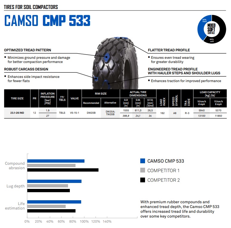 23.1*26SLD533 – CUB. NEUM. CAMSO 12 CMP 533 IDEAL COMPACTADORAS